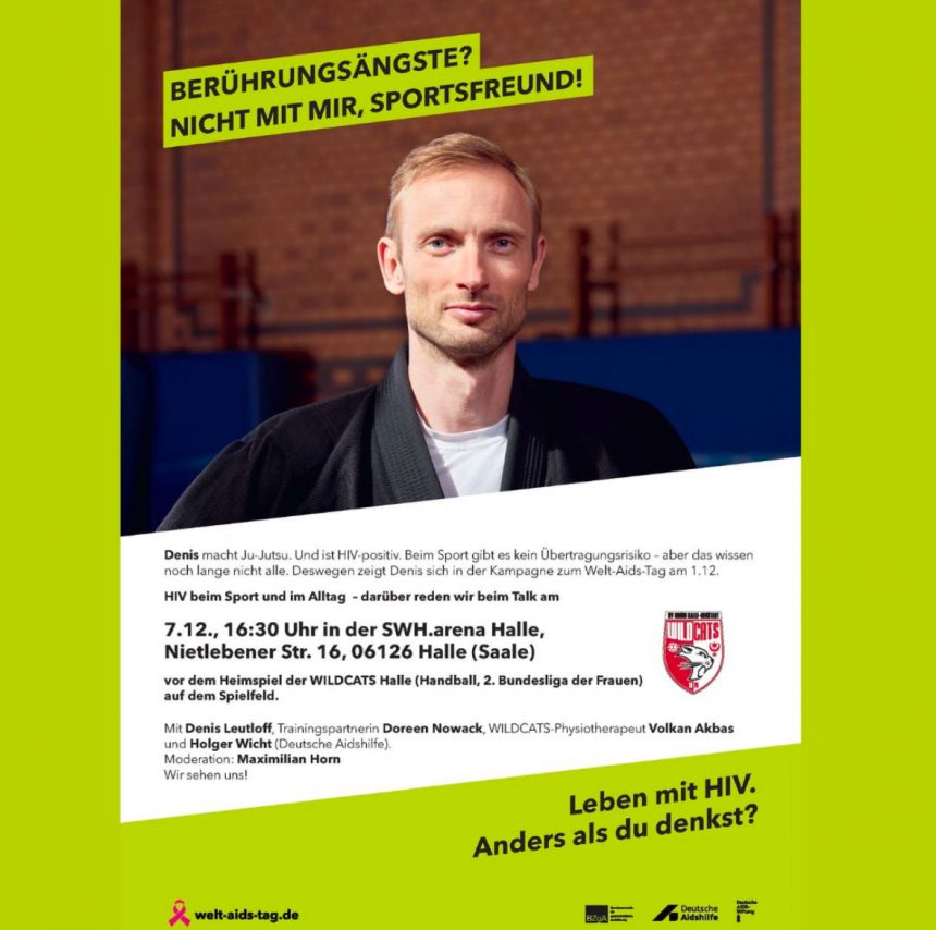 Anlässlich des Welt-Aids-Tags unterstützen wir zusammen mit der Deutschen Aidshilfe und dem SV UNION Halle-Neustadt eine wichtige Botschaft: „Leben mit HIV. Anders als du denkst?“